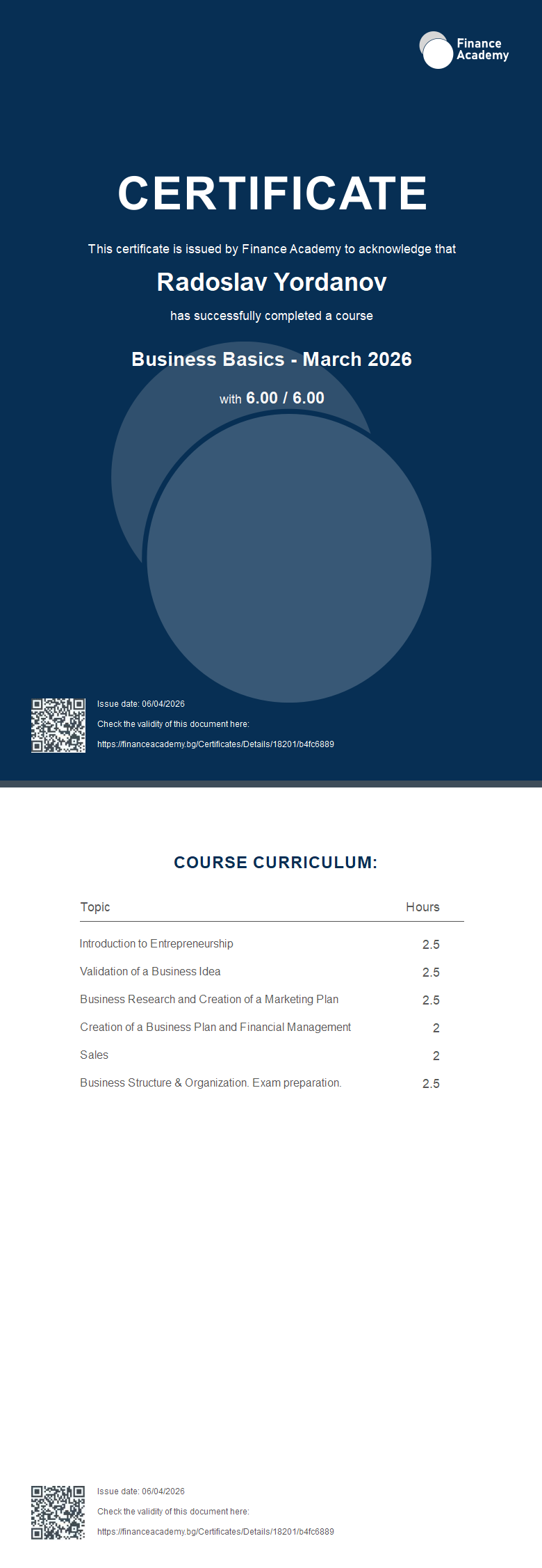 Сертификат - Business Basics - March 2026 - Finance Academy