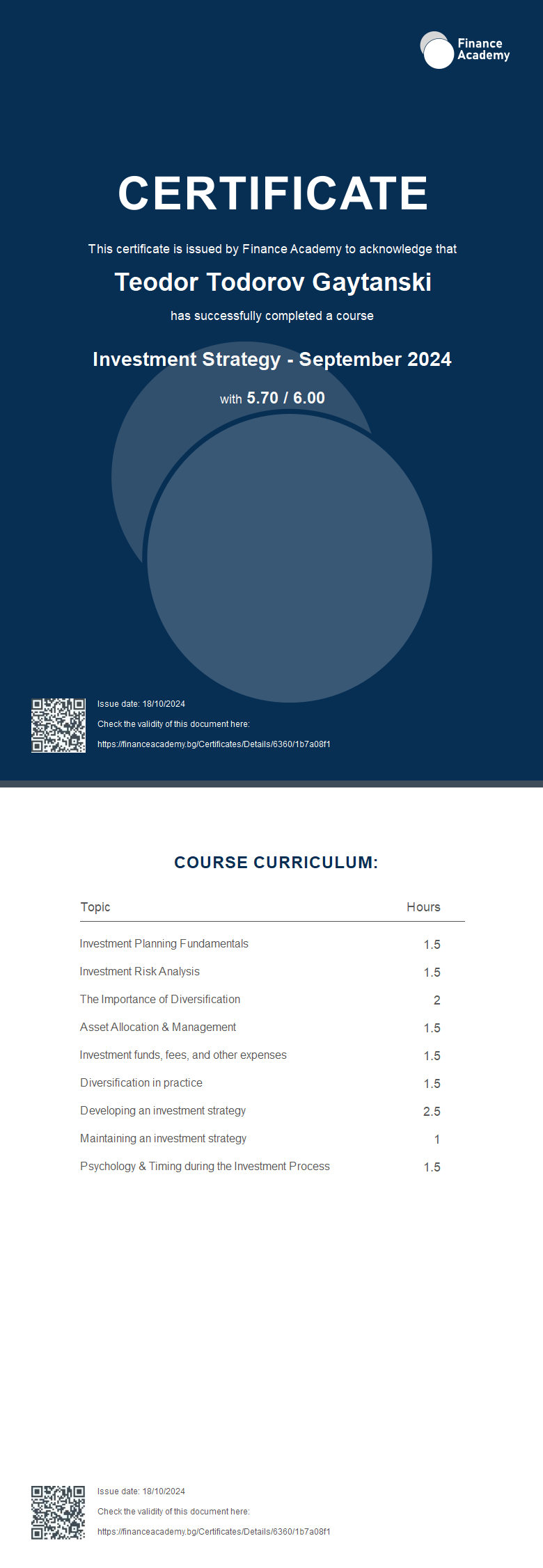 Сертификат - Investment Strategy - September 2024 - Finance Academy